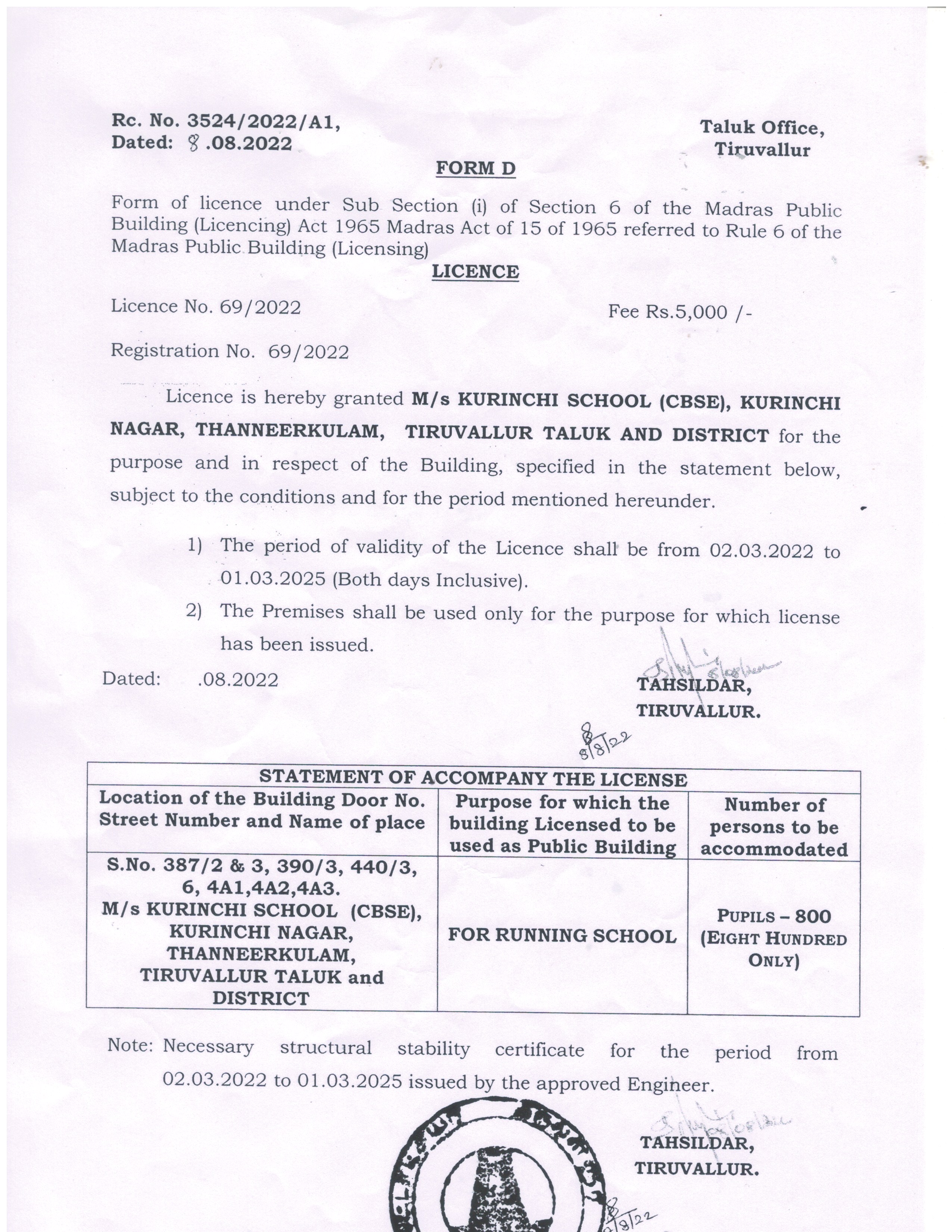 Form D Building License
